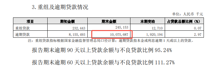 贵阳银行逾期贷款规模也呈现快速上涨趋势。截至6月末,贵阳银行逾期贷款金额较上年末增加19.2亿至100.75亿,占贷款总额的2.97%。