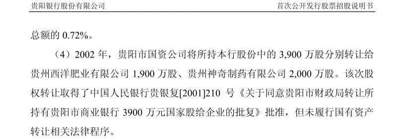 2002年,贵阳市国资公司转让了2000万股贵阳银行给贵州神奇投资公司,当年,贵州神奇制药厂还参与了贵阳银行的增资扩股。后来几经变化,贵州神奇投资公司的持股数量有一些调整。据贵阳银行2014年6月刊登的招股说明书披露,截至2013年12月31日,贵州神奇投资公司是贵阳银行的第四大股东,持有贵阳银行股份7151.3442万股,占当时总股本的3.98%。