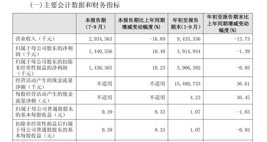 2025年10月30日晚间,贵阳银行披露三季报,2025年前三季度营收94.35亿元,同比下降13.73%;归属于母公司股东的净利润39.15亿元,同比下降1.39%。