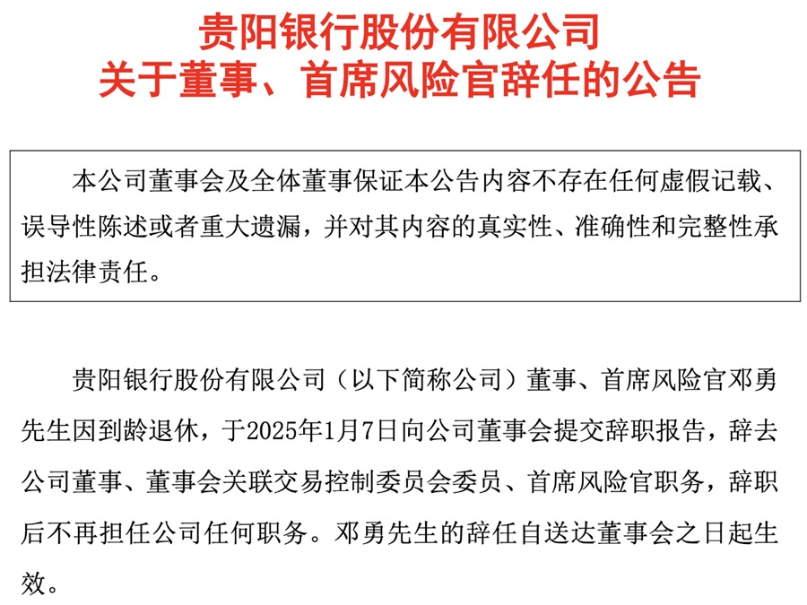 在治理层面,高管频繁更替同样引发了外界对贵阳银行内部决策体系和人才梯队建设的质疑。对区域性中小银行而言,管理团队的稳定性不仅是衡量公司治理水平和战略可持续性的核心标准,也是维护市场信心、资本市场预期及合作关系稳定的基础。