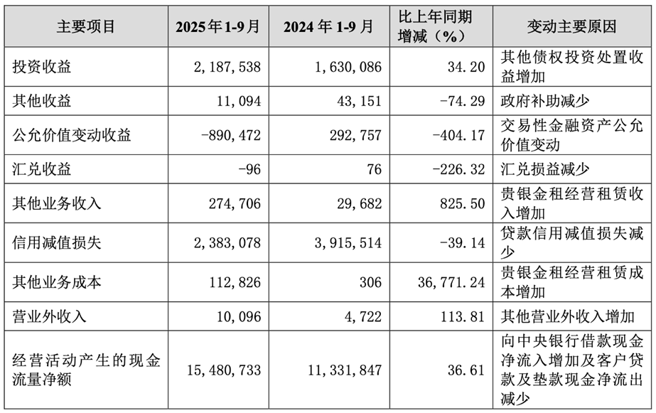 然而,非息收入内部波动较大,今年前三季度公允价值变动收益亏损8.9亿元,同比降幅高达404.17%,主要受交易性金融资产公允价值波动影响;其他收益同比下降74.29%,源于政府补助减少;汇兑收益同比下降226.32%。虽然投资与租赁业务短期支撑了利润,但这种结构性增长的可持续性仍存疑,非息收入对市场波动的高敏感度,使整体营收缺乏稳定性。