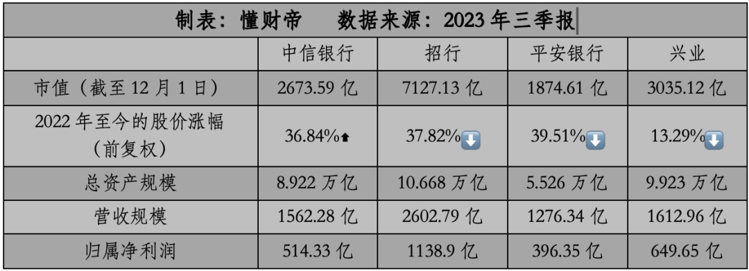 中信银行、招行、平安银行、兴业银行四家股份行在同一时期创立,但如今在资本市场上,却有着不同的命运。