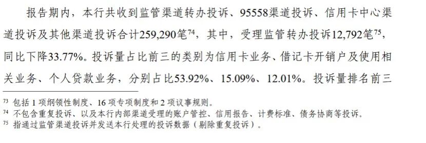 需要指出的是,年报披露,中信银行2025年共收到监管渠道转办投诉、95558渠道投诉、信用卡中心渠道投诉及其他渠道投诉合计25.93万笔。投诉量占比前三的类别为信用卡业务、借记卡开销户及使用相关业务、个人贷款业务,分别占比53.92%、15.09%、12.01%。
