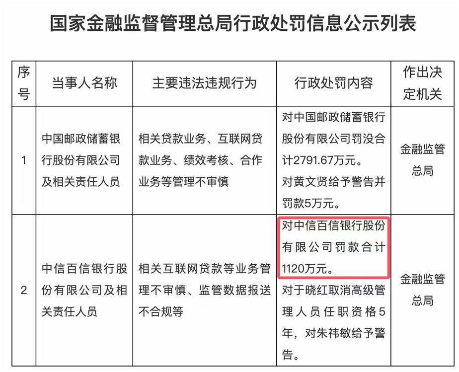 与此同时,合规问题开始集中暴露。百信银行在贷后管理中高度依赖第三方催收机构,对外包行为管控不足,导致投诉和监管风险上升。2025年,该行收到成立以来金额最大的罚单,被罚1120万元,相关高管也被监管限制任职。这表明,其依赖技术和流量驱动的风控模式,在实际执行中存在明显短板。