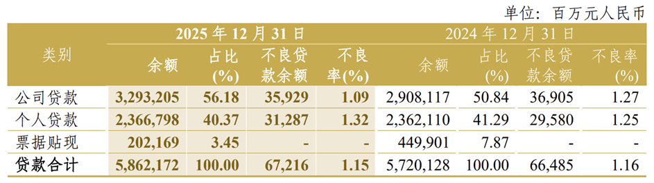 2025年,对公贷款不良率降至1.09%,而零售端风险持续上升:个人经营贷不良率为1.46%,消费贷不良率升至2.80%,信用卡不良率达到2.62%。在风险成本快速侵蚀利润的背景下,资源向对公业务倾斜,本质上是对风险与收益重新权衡后的结果。