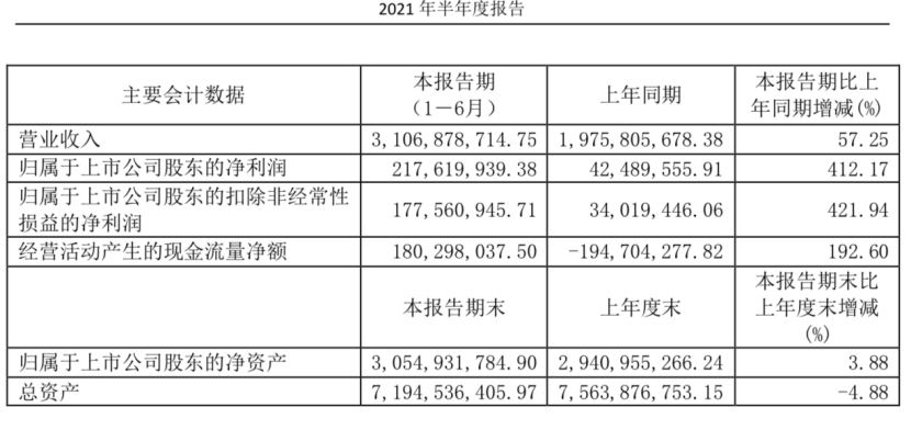 半年报显示,2021年上半年,喜临门营业收入31.07亿元,同比增幅 57.25%;剔除去年同期影视业务因素,家具主营业务收入同比增幅为68%。