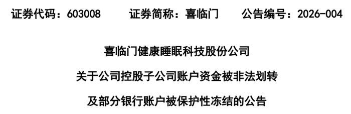 为防范风险蔓延,喜临门紧急将旗下涉及约9亿元的多个银行账户进行保护性自行冻结,并已向公安机关申请立案侦查。