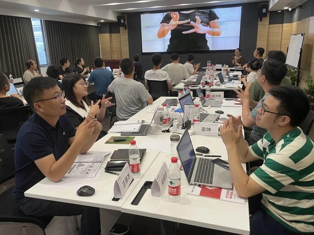 除了常规授课外,为提高学员的课堂专注度,培训过程中穿插着有趣的互动环节:分组相互介绍课程、流动随机式分享“小故事”、3分钟不能停、全员快乐拍拍操/手指操等,不仅缓解了长时间培训的疲惫感,也让学员在交流过程中逐步明确课程需求、课程定位。