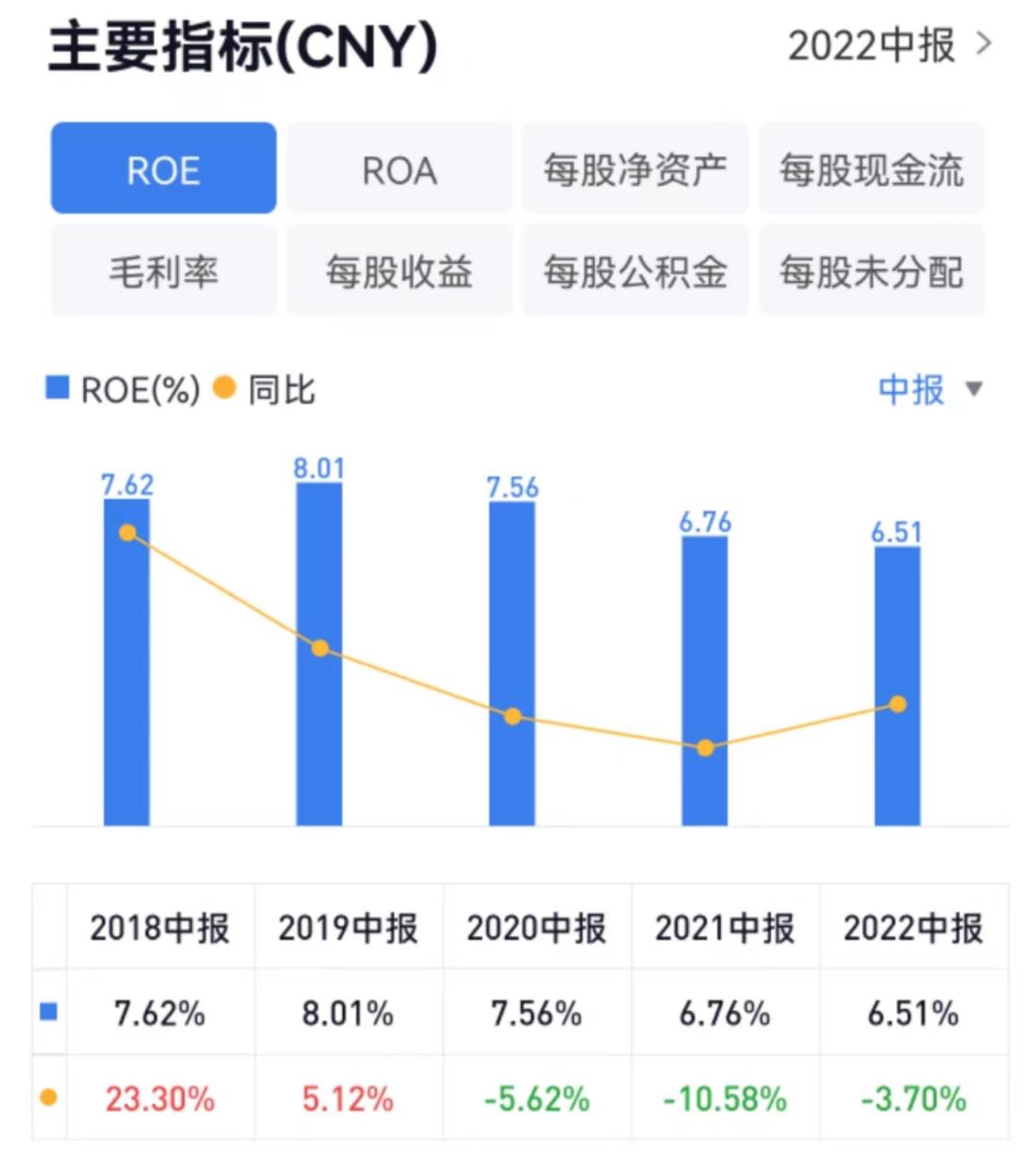 数据显示,2018年至2022年中报,华设集团ROE分别为7.62%、8.01%、7.56%、6.76%、6.51%。2022年中报ROE 同比下降3.7%,为近五年来最低。