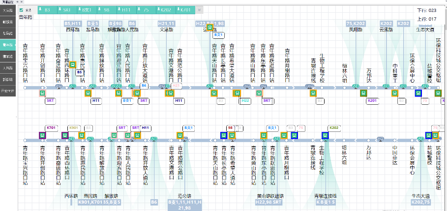 盐城公共交通同站台调度技术是基于混合车辆运行管理模型,结合实时载客人数以及综合手机信令、公交运行、车联网等多源数据,精准把控居民出行时空分布特征及公交客流规律,实现在同一公交站台的SRT、BRT及常规公交等不同车体长度的最优调度停靠,大大提升公交整体通行效率,本项目将技术与管理进行深度融合,建成了国内首个基于中运量公交廊道的多线路多场景融合协同运营指挥调度系统。