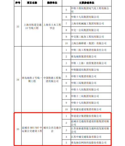 近日,经第二十届第一批中国土木工程詹天佑奖终审会议严格评审,集团申报的盐城市BRT/SRT中运量公交建设工程项目成功入选。