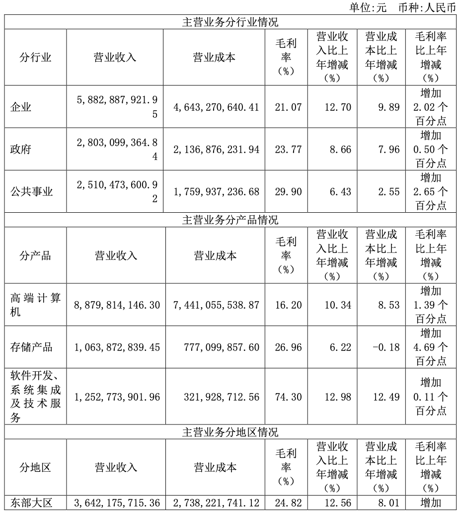其中高端计算机收入88.8亿元,存储产品收入10.64亿元。