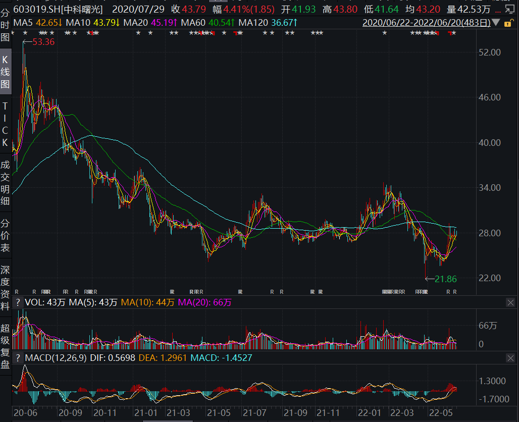 业绩高歌猛进之时,公司股价却走势低迷。2020年年中至今,公司股价从最高时的53.36元/股跌至27.64元/股,跌幅几乎“腰斩”。今年年初该股乘“东数西算”风口短暂上涨,股价到达34.7元/股的高点后,此后又回吐了大部分涨幅。而其所处的电子设备板块,从去年6月到今年6月20日收盘,板块指数的跌幅仅为11.17%,也就是说,中科曙光的股价大幅下跌并不仅仅是行业整体性的原因。