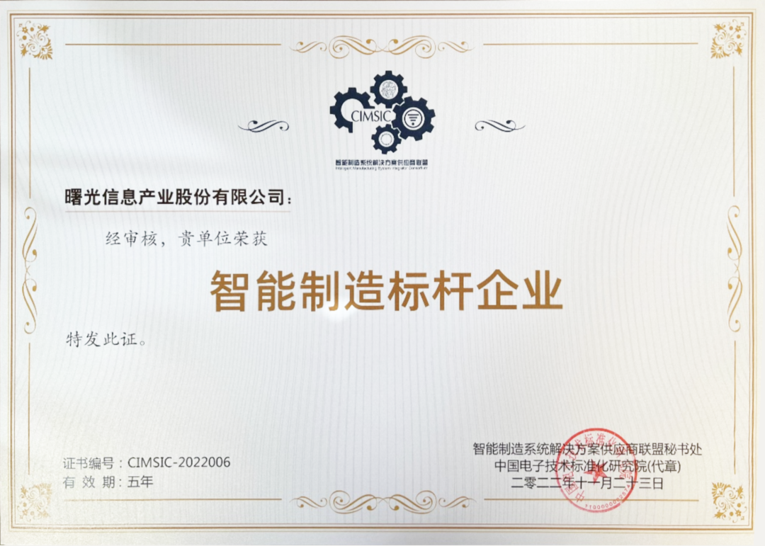 11月23日,2022世界智能制造大会在南京开幕。大会发布了国家级“智能制造标杆企业”(第六批)名单,中科曙光成功入选,成为新一批具有行业代表性和示范效应的标杆企业。