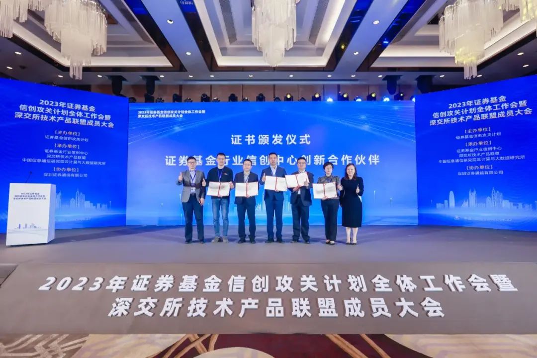 会上,为首批证券基金行业信息技术应用创新中心合作伙伴颁发了证书。中科曙光凭借在金融行业内多年的创新实践经验,成为首批联盟成员。