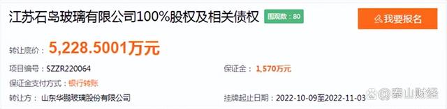为进一步盘活资产,回笼资金聚焦主业发展,山东华鹏正式挂牌转让江苏石岛玻璃有限公司(简称“江苏石岛”)100%股权及相关债权,底价为5228.5001万元,其中江苏石岛100%股权挂牌价为1元。据悉,此次挂牌截至11月3日,山东发展投资控股集团有限公司批准。