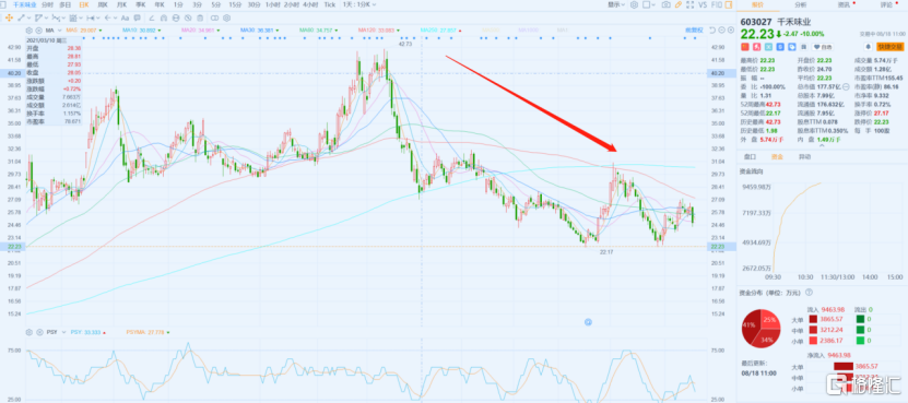 今日开盘,股价更是毫无悬念的一字板跌停,报22.23元/股,千禾味业的股价也再度逼近腰斩。