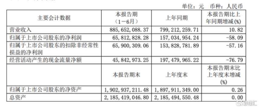 千禾味业2021年上半年的净利润为6581.28万元,而其2020年上半年这一数据为15703.50万元,同比下降了58.09%,少了9122万元左右。