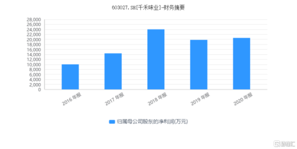 但是,从2019年开始,千禾味业的业绩表现的并不好,其2018年归母净利润为2.40亿元,2019年为1.98亿元,同比下降17.40%;2020年,千禾味业的归母净利润为2.06亿元,同比增长3.81%,乍一看,业绩出现了增长是好事情,但是与2018年相比,千禾味业2020年的业绩实际上还是比2018年下滑了逾0.3亿元。
