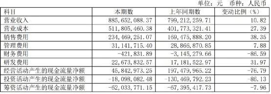 经营活动产生的现金流量净额跌幅更惨:同比减少76.79%,从去年同期的1.97亿元,跌至今年上半年的4584.3万元。