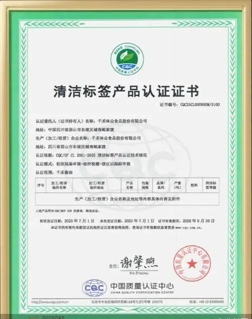 今天,我们就从评选标准、权威公正性的视角,去好好说一说千禾味业煞费苦心拿到的这张清洁标签产品认证证书。