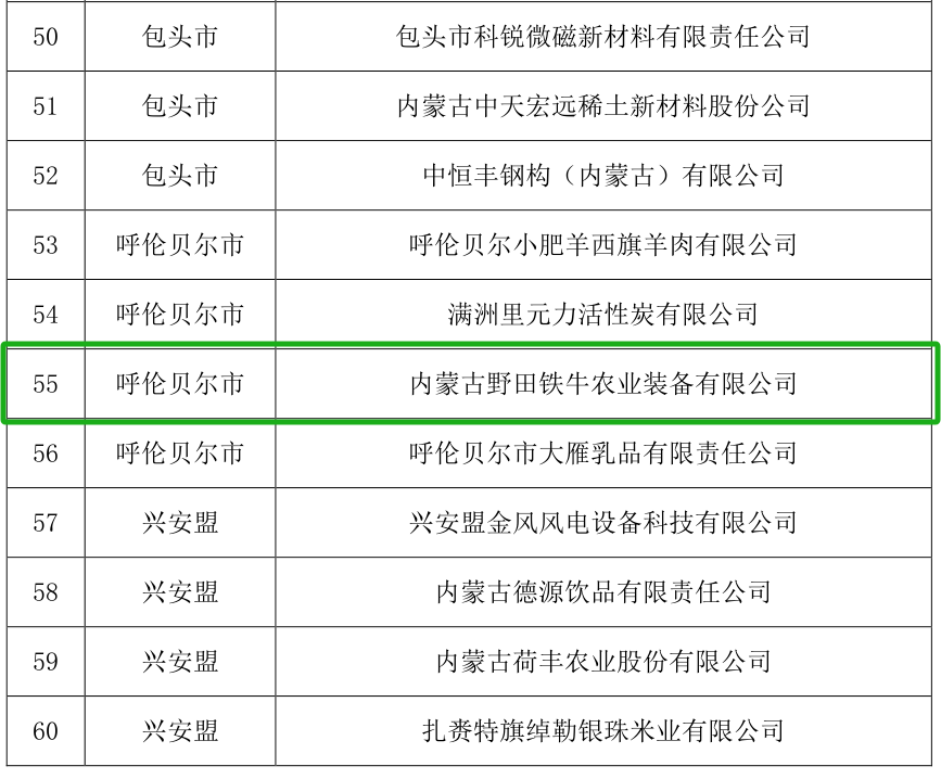 近日,内蒙古自治区工业和信息化厅公布了2025年“绿色制造示范单位”名单。天鹅股份全资子公司内蒙古野田铁牛农业装备有限公司入选2025年自治区级绿色制造示范单位名录,获评“自治区绿色工厂”,标志着公司绿色发展迈上新台阶。