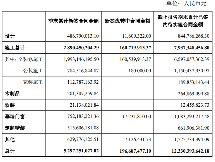 期内,季末累计新签合同金额52.97亿元,新签流转中合同金额1.97亿元,截止报告期末累计已签约待实施合同金额123.3亿元。