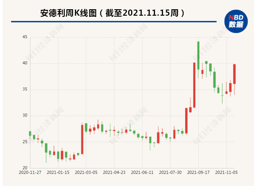 11月15日,安德利(603031,SH)股价于10点后开始大幅拉升,小幅波动后于午间封死涨停板,收盘报收于39.82元/股,涨幅为10%。