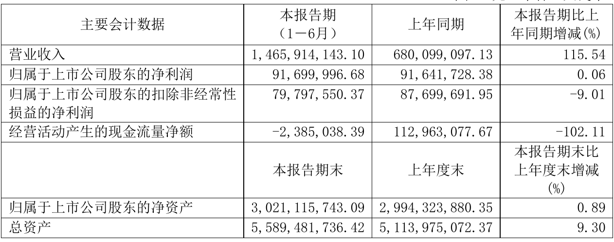 挖贝网8月27日,三维股份(603033)近日发布2021年半年度报告,报告期内营业收入1,465,914,143.10元,同比增加115.54%;净利91,699,996.68元,同比净利增加0.06%。