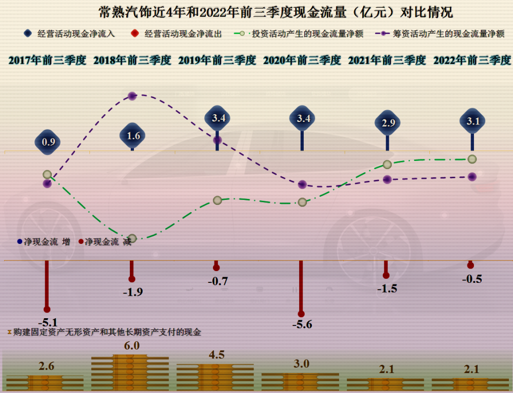 2022年前三季度不仅钱赚到了,也基本上收回来了。虽然“经营活动的净现金流”略低于净利润,但净利润中有投资收益,该部分不在经营活动的净现金流中反映。汽配行业的欠款非常严重,从常熟汽饰的情况看好像这方面还不太明显,这个我们后面说资产负债结构的时候再说。