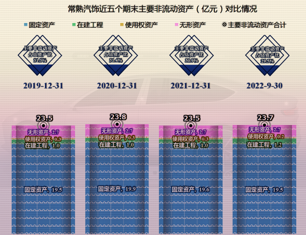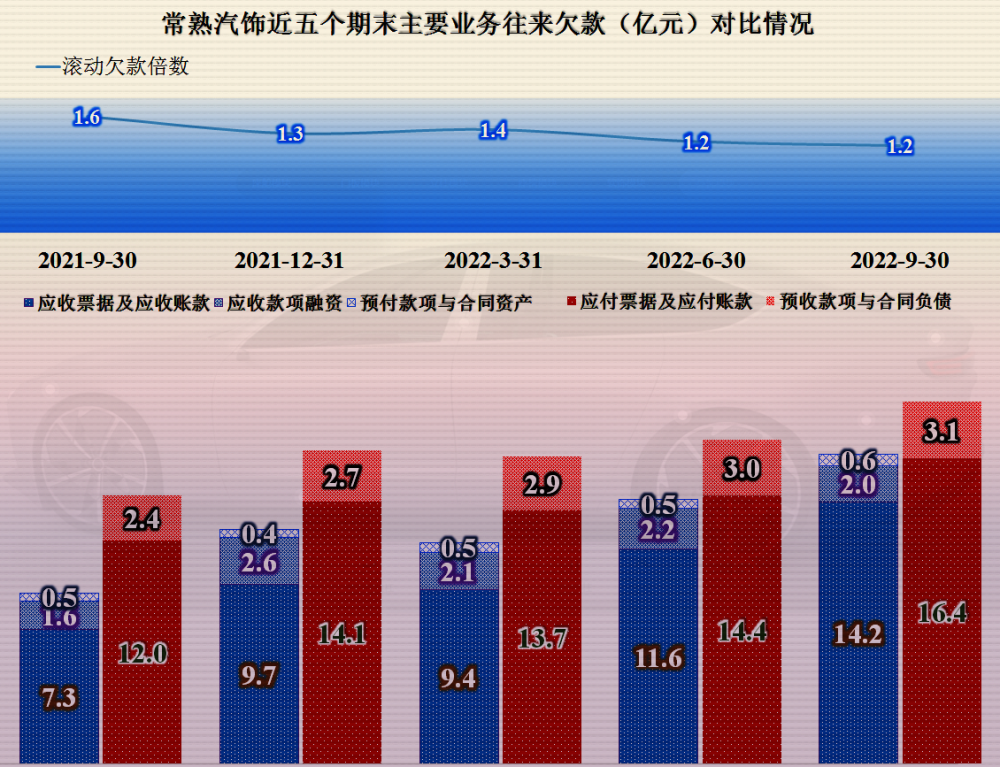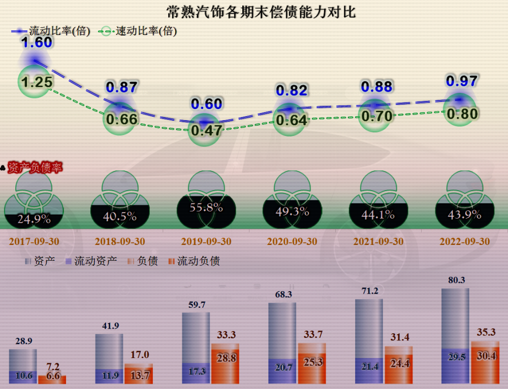 原本以为,持续盈利的常熟汽饰的偿债能力会很好的,其实不然,在2019年三季度末时,他们的长短期偿债能力都很差。长期资产大量依靠流动负债提供资金来源,流动比率和速动比率也低得有点离谱。好在2022年三季度末,已经明显好转,长短期偿债能力都有明显提升,基本达到安全的水平。