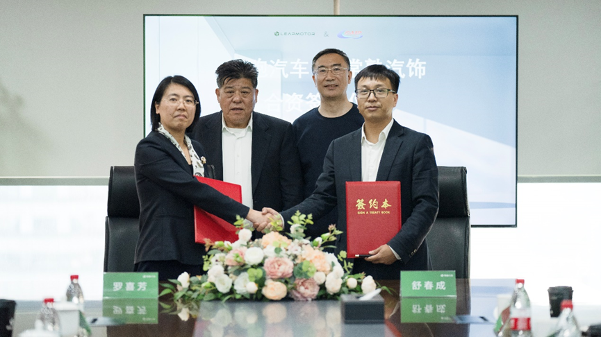 5月8日,浙江杭州,零跑汽车与常熟汽饰集团举行合资签约仪式,宣布将联合开发、生产和销售仪表板、门板、立柱等内外饰系统、模块化零件等。