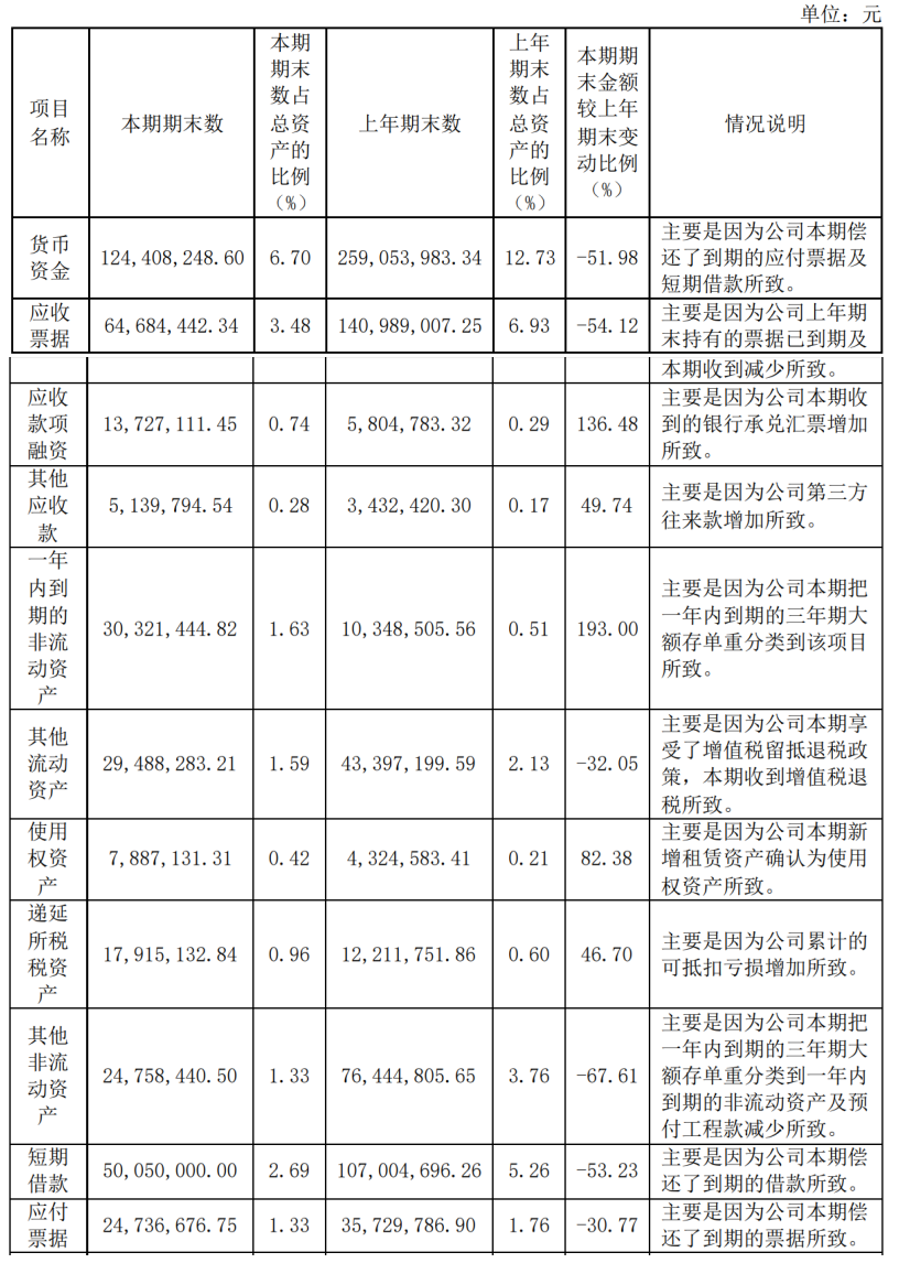 2022上半年,华立股份货币资金为1.24亿元,同比减少51.98%,主要是因为公司本期偿还了到期的应付票据及短期借款所致;应收票据为6468.44万元,同比减少54.12%,主要是因为公司上年期末持有的票据已到期及本期收到减少所致。