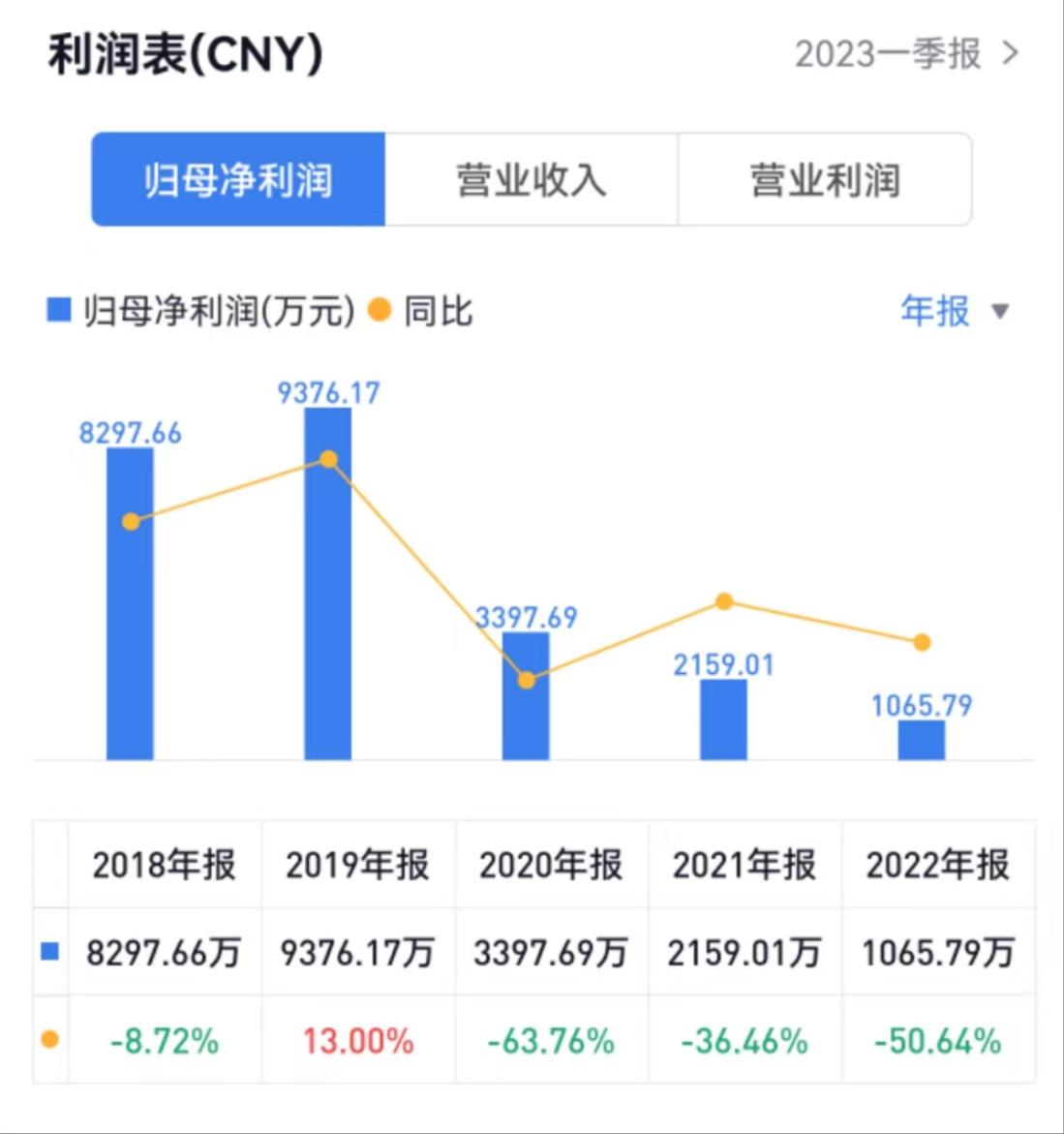 根据公告,2022年度公司营收7.73亿元,同比降33.33%;归属于上市公司股东的净利润1065.79万元,同比降50.64%。