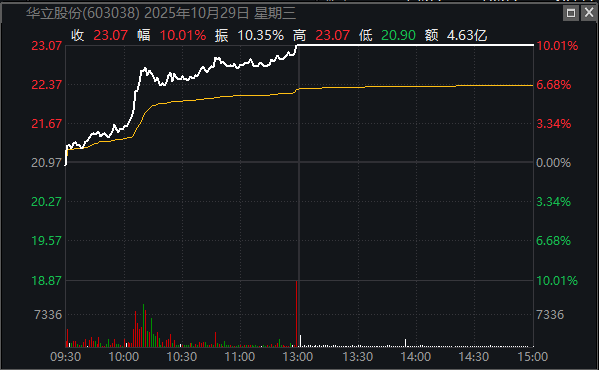 值得一提的是,就在该收购消息公布当日(10月29日),华立股份股价开盘后一路震荡拉升,并于午后开盘冲上涨停并成功守住直至收盘。