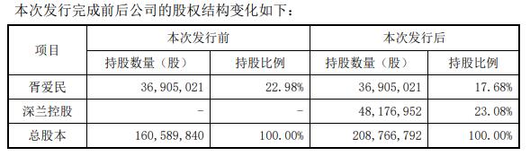 本次发行后,公司控股股东、实际控制人将发生变更。按照本次发行数量上限测算,本次发行完成后,深兰控股持股公司48,176,952股,占上市公司总股本的23.08%,深兰控股成为公司控股股东,陈海波成为公司的实际控制人。
