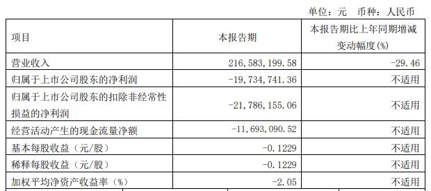 2023年第一季度,华脉科技实现营业收入216,583,199.58元,同比减少29.46%;归属于上市公司股东的净利润-19,734,741.36元;归属于上市公司股东的扣除非经常性损益的净利润-21,786,155.06元;经营活动产生的现金流量净额-11,693,090.52元。