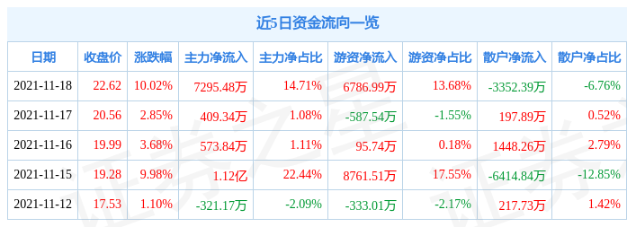 资金流向数据方面,当日主力资金净流入7295.48万元,游资资金净流入6786.99万元,散户资金净流出3352.39万元。近5日资金流向一览见下表: