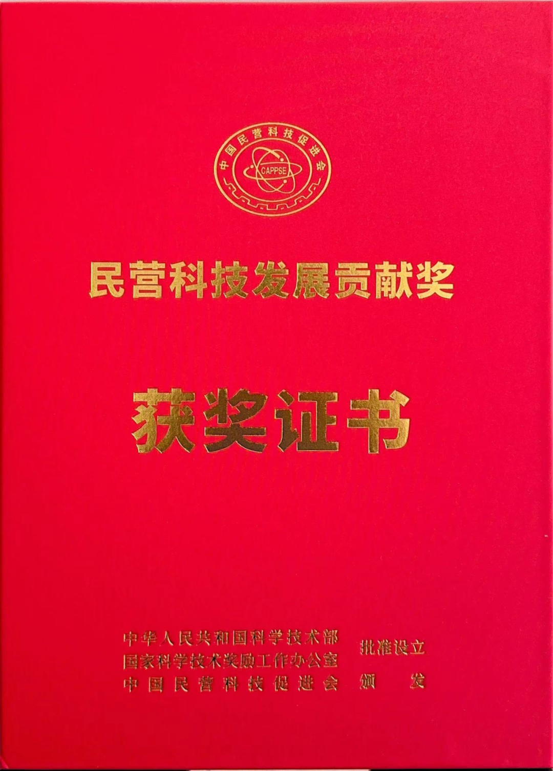 “中国民营科技促进会民营科技发展贡献奖”,是经国家科学技术部和国家科技奖励工作办公室批准设立,主要表彰民营科技企业、企业家、科技人员在产业技术创新、促进经济发展方面所取得的卓越成就,鼓励企业加大研发投入,提升核心竞争力,促进科技成果转化与产业化。