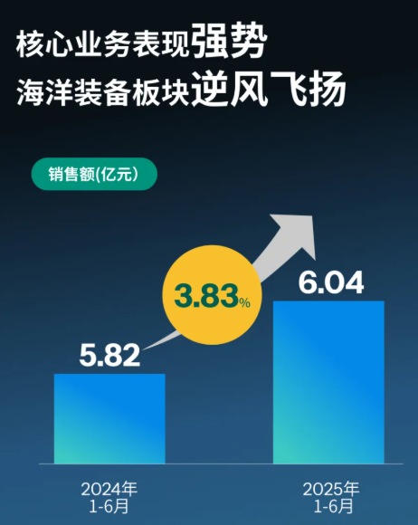 面临2025年度集装箱需求相较2024年度可能大幅下降的情况下,麦加芯彩海洋装备板块于报告期内的销量与去年同期基本持平,销售额同比增长3.83%至6.04亿元,毛利率、毛利额均实现增长,同时船舶涂料亦开始贡献销售。