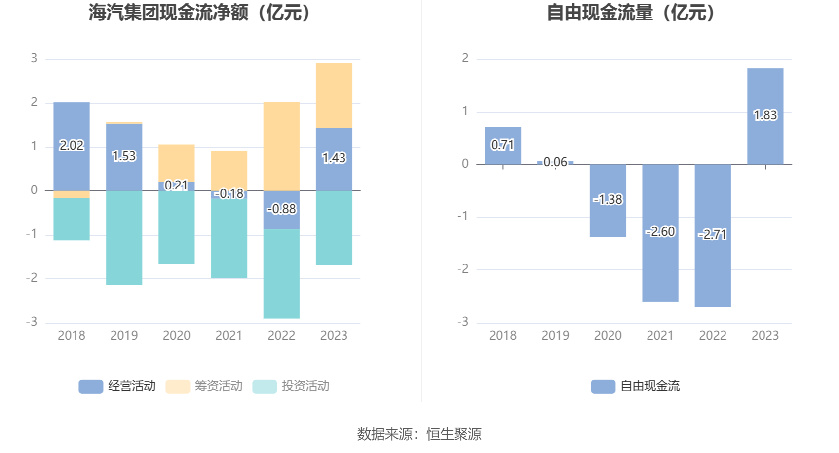 进一步统计发现,2023年公司自由现金流为1.83亿元,上年同期为-2.71亿元。