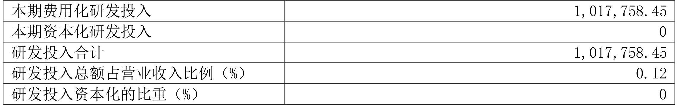 2023年全年,公司研发投入金额为101.78万元,同比下降17.19%;研发投入占营业收入比例为0.12%,相比上年同期下降0.05个百分点。此外,公司全年研发投入资本化率为0。