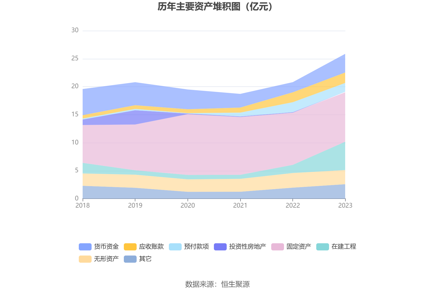 资产重大变化方面,截至2023年年末,公司在建工程较上年末增加249.06%,占公司总资产比重上升12.64个百分点;固定资产较上年末减少5.40%,占公司总资产比重下降10.67个百分点;货币资金较上年末增加83.20%,占公司总资产比重上升4.14个百分点;无形资产较上年末减少3.71%,占公司总资产比重下降2.82个百分点。