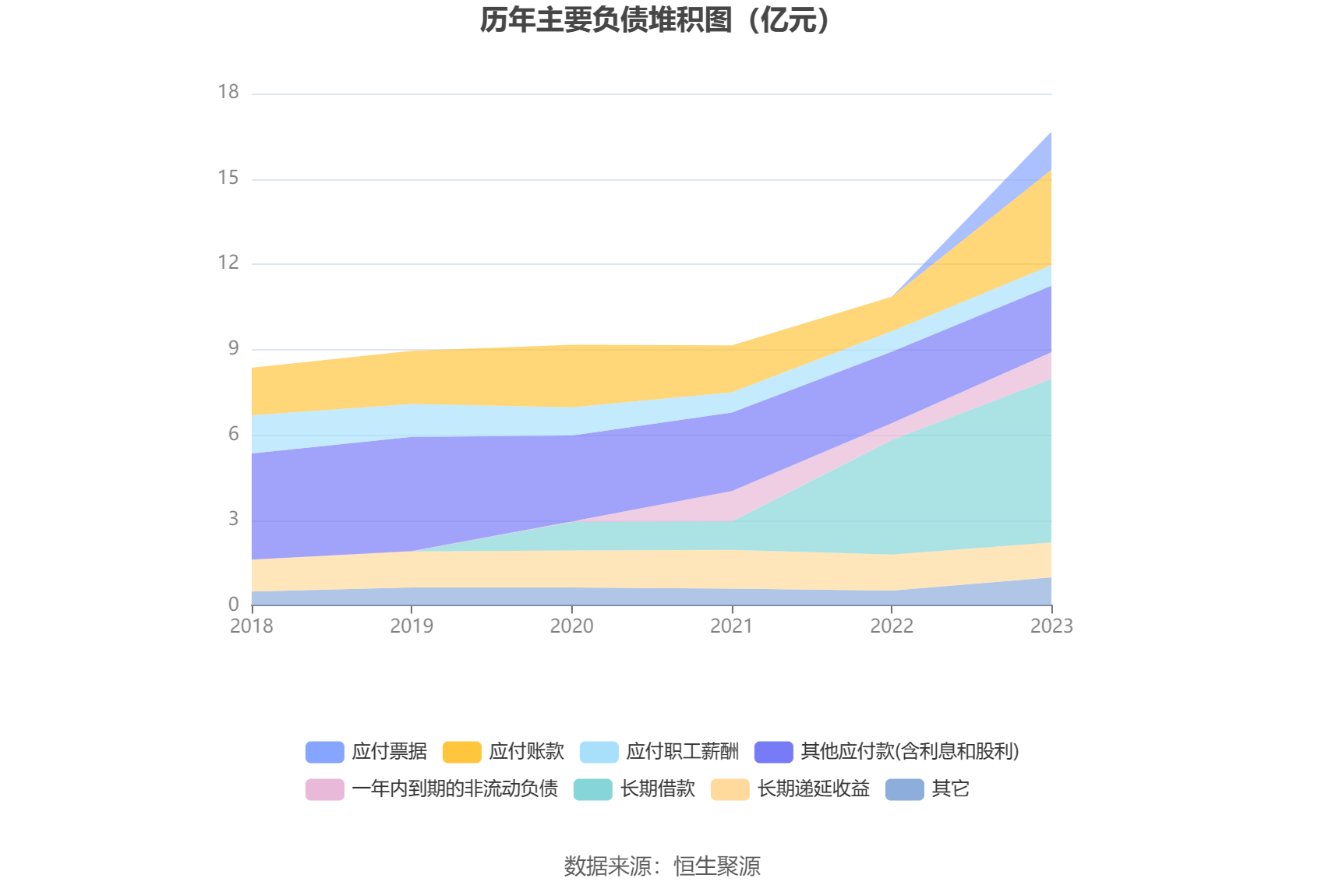负债重大变化方面,截至2023年年末,公司应付账款较上年末增加178.29%,占公司总资产比重上升7.19个百分点;长期借款较上年末增加43.08%,占公司总资产比重上升2.93个百分点;合同负债较上年末增加554.79%,占公司总资产比重上升1.39个百分点;一年内到期的非流动负债较上年末增加59.34%,占公司总资产比重上升0.80个百分点。
