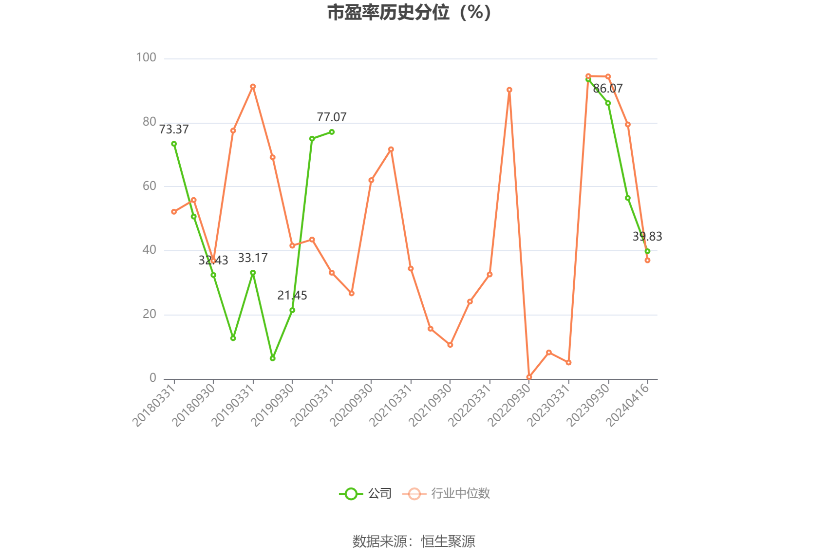 市盈率为负时,不显示当期分位数,会导致折线图中断。