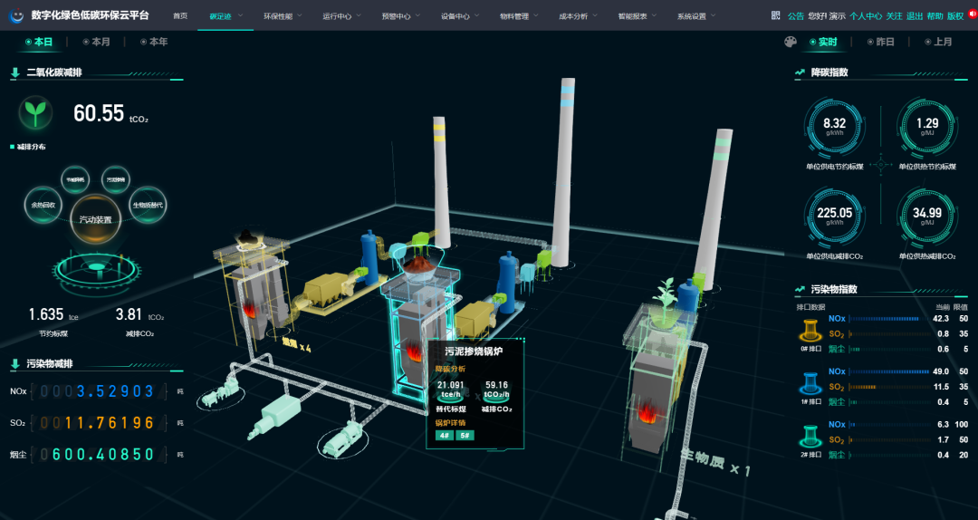 公司持续深化数字技术在传统电力热力行业的应用,经过多年产学研合作,研制了“电力热力行业数字化智慧环保云平台”,平台以先进能源环保技术为基础,结合工业互联网、人工智能、大数据、虚拟现实等数字化技术,建立工艺机理与数据协同驱动模型,突破多种污染物脱除过程的关键参数精准预测与智能调控技术,实现了烟气超低排放过程的安全稳定、精准预测和智慧协同。同时,项目通过数字孪生、大数据分析、传感器测量等技术的结合,实时全过程动态量化二氧化碳生成与排放,为企业奠定了良好的碳资产管理基础。