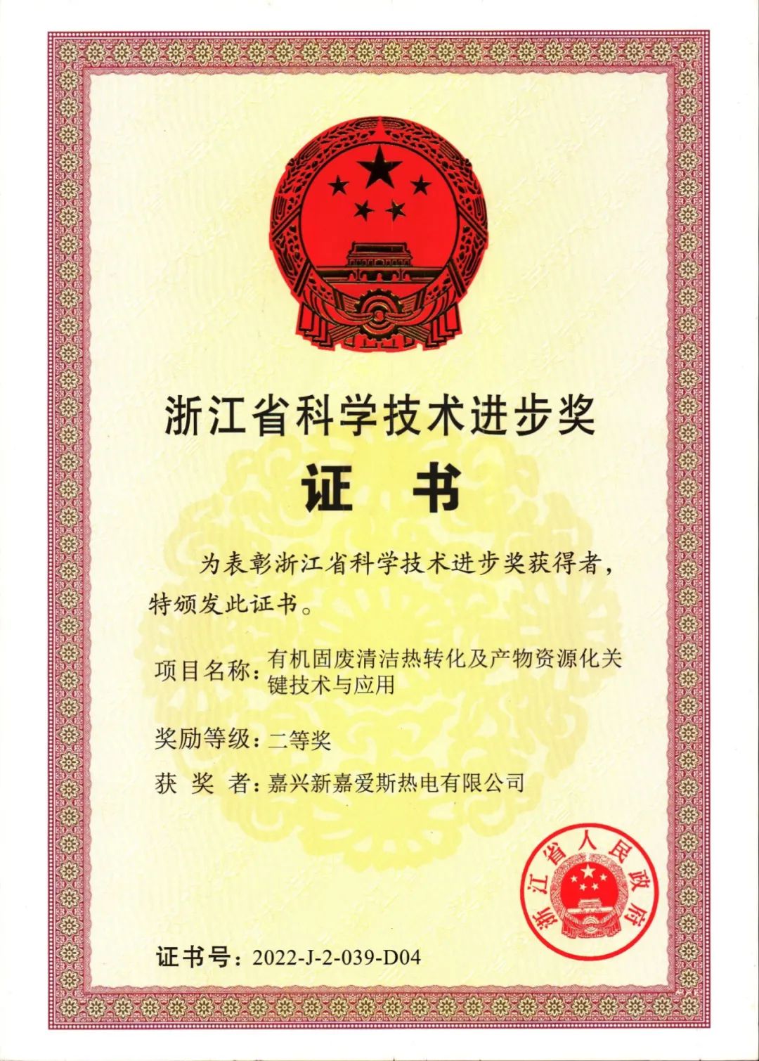 公司与浙江工业大学等联合申报的《有机固废清洁热转化及产物资源化关键技术与应用》项目荣获“2022年度浙江省科学技术进步二等奖”;自主创新的《规模化生物质绿色高效处置协同热电联产关键技术》在第48届日内瓦国际发明展上荣获“2023年度日内瓦国际发明金奖”;与温州大学联合申报的《面向污泥耦合热电气高效联供的智能感知与协同控制关键技术及应用》荣获中国商业联合会颁发的“全国商业科技进步特等奖”。通过创新赋能,旗下新嘉爱斯荣获国家级专精特新“小巨人”企业称号,桐乡泰爱斯荣获“浙江省专精特新中小企业”和“浙江省知识产权示范企业”称号,为公司能源实业的绿色高质量发展奠定了坚实的基础。