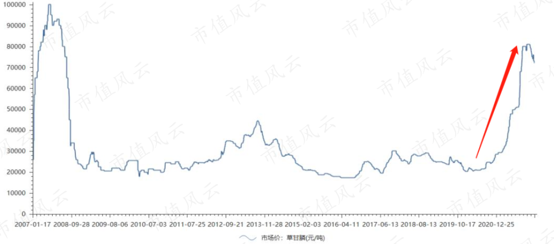 2020年,和邦生物的纯碱和双甘膦/草甘膦产品营收占比为91.26%(注:内部抵减前),所以,在和邦生物的业务没有发生明显改变的情况下,其2021年的业绩大爆发与纯碱和双甘膦/草甘膦产品密切相关。