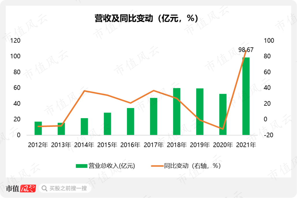 根据业绩快报,2021年,和邦生物实现营业收入98.67亿元,而这也一举创下了和邦生物上市以来的最好营收水平。