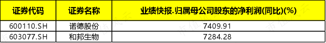 截至3月3日盘后,A股共有915家上市公司发布了业绩快报,而和邦生物凭借7,284.28%的净利润增幅,暂列第二。